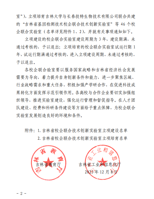 吉林省校企联合技术创新实验室立项培育名单