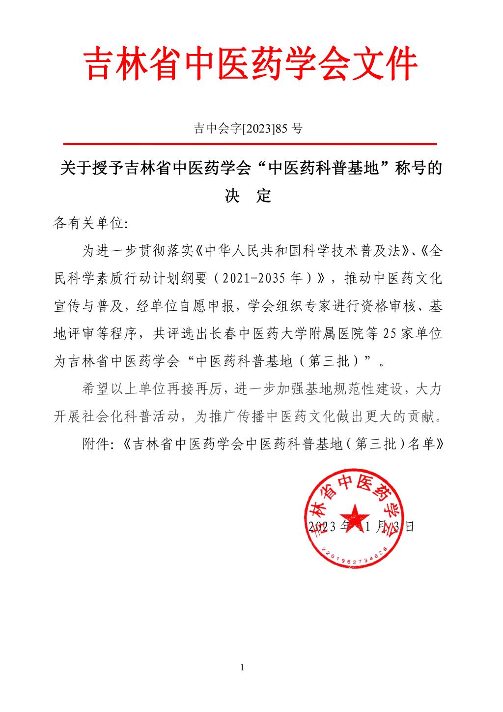 近日,吉林省中医药学会“2023-2027年度吉林省中医药文化与科学普及基地(第三批)”评选结果揭晓,我校药品食品学院申报的“中药传统文化体验与科普宣传基地”经专家审核、基地评审等程序,成功获得此称号。
