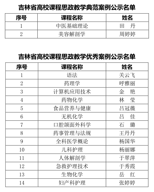 近日,由吉林省教育厅组织的高校课程思政教学案例评选与展示交流活动结果揭晓,我校《中医基础理论》等2项案例获评高校课程思政教学典范案例,《语法》等14项案例获评高校课程思政教学优秀案例。教学案例将在全省范围内开展示范性交流活动,供全省高校相互学习借鉴。