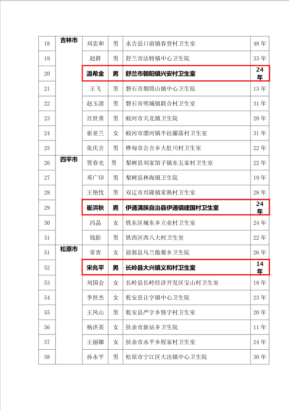 根据《关于开展吉林省第三届“最美乡村医生”评选活动的通知》(吉卫联发〔2023〕34号)通知要求,省委宣传部联合省卫生健康委、省乡村振兴局、省中医药管理局开展了吉林省第三届“最美乡村医生”评选活动。经基层推荐、市州审核、联合评选环节,全省共评选出“最美乡村医生”80人,我校“一村一名大学生村医”班学员刘淑艳、宋兆平、李洪秋、李铁刚、李继峰、温希金、崔洪秋榜上有名。