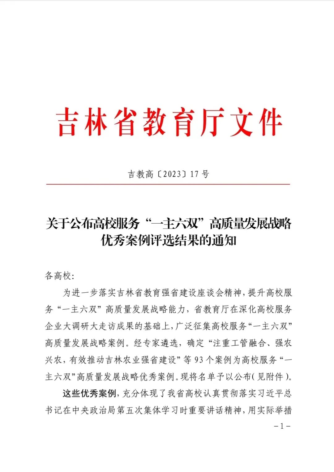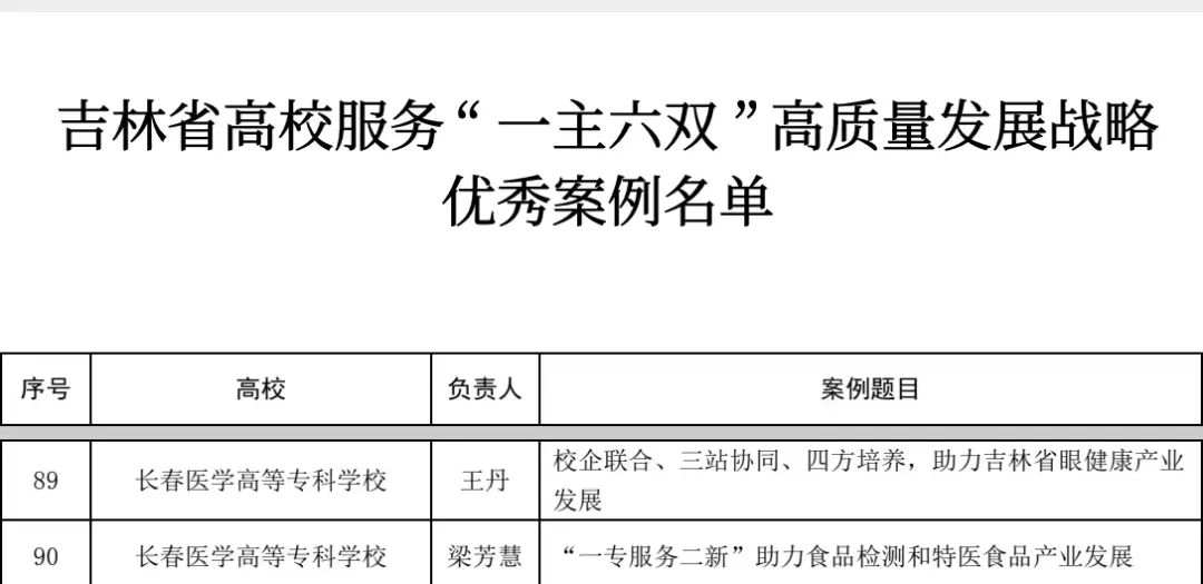 近日,由吉林省教育厅组织的吉林省高校服务“一主六双”高质量发展战略优秀案例评选结果揭晓,我校医学技术学院申报的《校企联合、三站协同、四方培养,助力吉林省眼健康产业发展》案例、药品食品学院申报的《“一专服务二新”助力食品检测和特医食品产业发展》案例获评优秀案例。