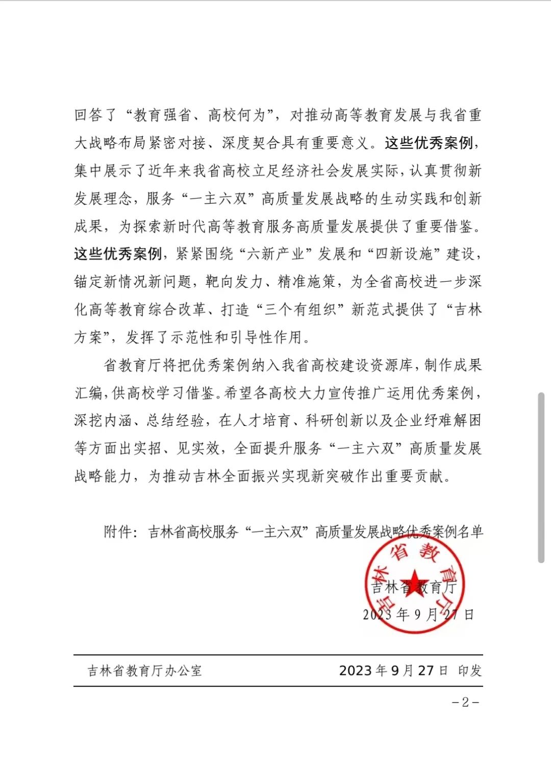 本次优秀案例评选活动,我校共申报六项成果,集中展示了近年来学校立足吉林省医药健康产业发展,服务“一主六双”高质量发展战略的生动实践和创新成果。