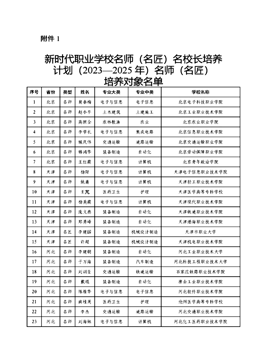为深入学习贯彻党的二十大精神,落实中共中央办公厅、国务院办公厅《关于深化现代职业教育体系建设改革的意见》要求,不断加强职业学校教师校长队伍建设,教育部于2023年7月启动“新时代职业学校名师(名匠)名校长培养计划”(以下简称职教“三名”计划)评选工作。经省级教育行政部门推荐,专家综合评议,最终确定高职院校名师(名匠)培养对象210人并于近日公布。我校三级教授、总督学周银玲同志赫然在列!