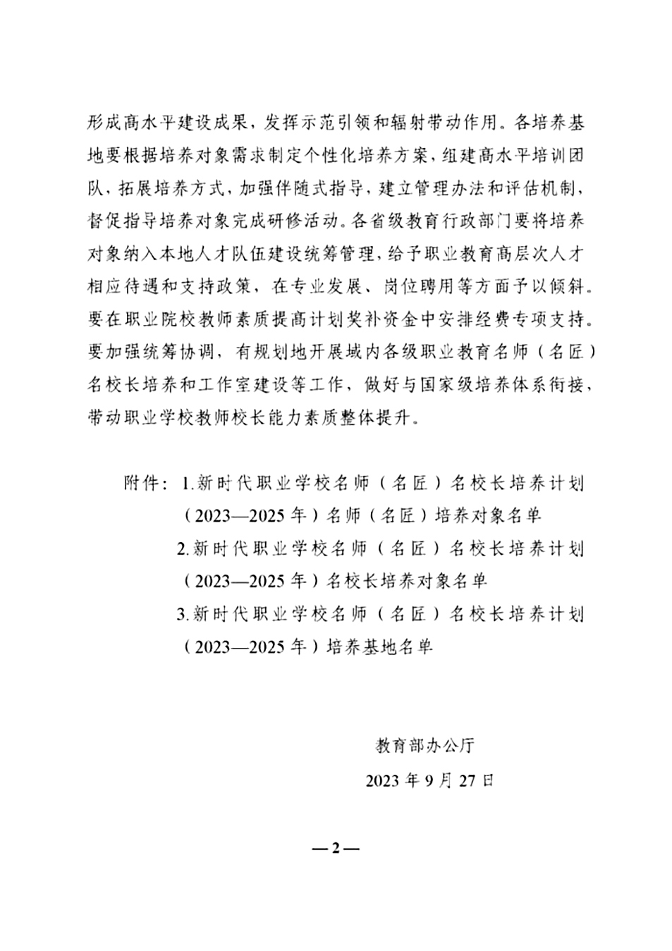 职教“三名”计划旨在培养打造一批理想信念坚定、师德高尚、教育教学能力和专业实践能力突出的双师型名师(名匠),一批办学理念先进、办学定位准确、勇于开拓创新、精通现代职业学校治理的教育家型名校长。通过搭建国家级名师、名校长工作室和名匠技艺技能传承创新平台,建立推荐、培养、管理、使用一体化的培养体系和管理机制,发挥名师(名匠)名校长示范引领作用,带动职业教育教师校长能力素质整体提升。