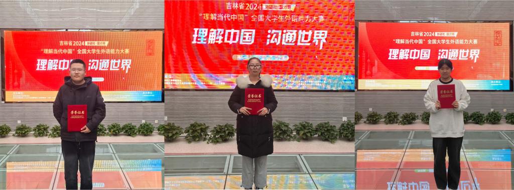 吉林省2024年“外研社·国才杯”“理解当代中国”外语能力大赛高职组职场英语挑战赛于10月26日和27日在长春职业技术学院举行。本次大赛设有演讲大赛和写作大赛两个赛项,共有来自全省28所职业院校的140余名选手参加比赛。经过为期两天的激烈角逐,我校23级国护1班张淇昱和24级护理9班邵琦同学获得演讲大赛二等奖,24级中药2班王阳和24级护理1班崔冰晴获得写作大赛二等奖,24级针推1班杨晨获得写作大赛三等奖。